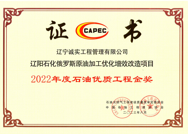 2022年度石油優質工程金獎