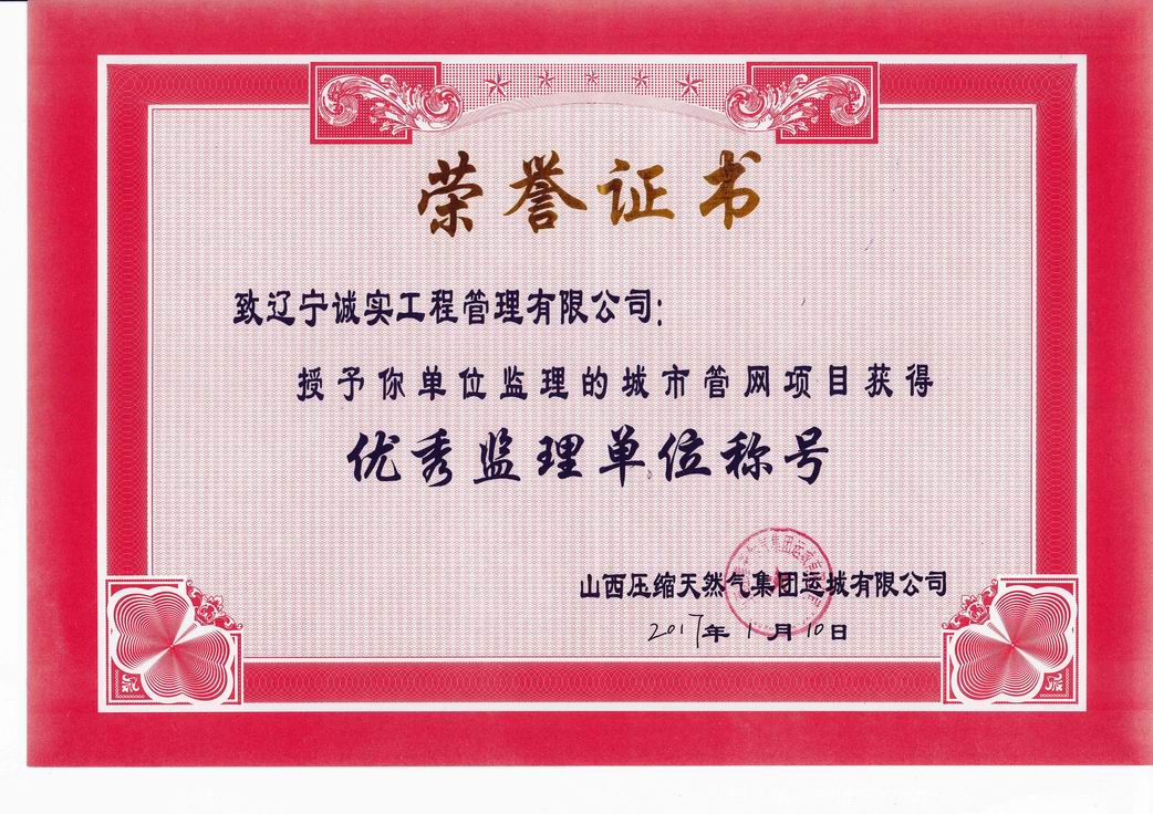 2017年山西壓縮天然氣集團優秀監理單位