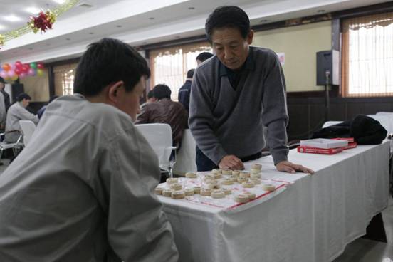 公司員工在進行象棋比賽